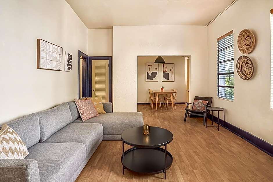 The suite features a fully-equipped kitchen, seating area, and flat-screen cable television. A desk is also included.